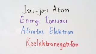 Sifat periodik unsur terdiri dari: jari-jari atom, energi ionisasi, afinitas elektron, keelektronegatifan. ======================== SUBSCRIBE to be smarter !